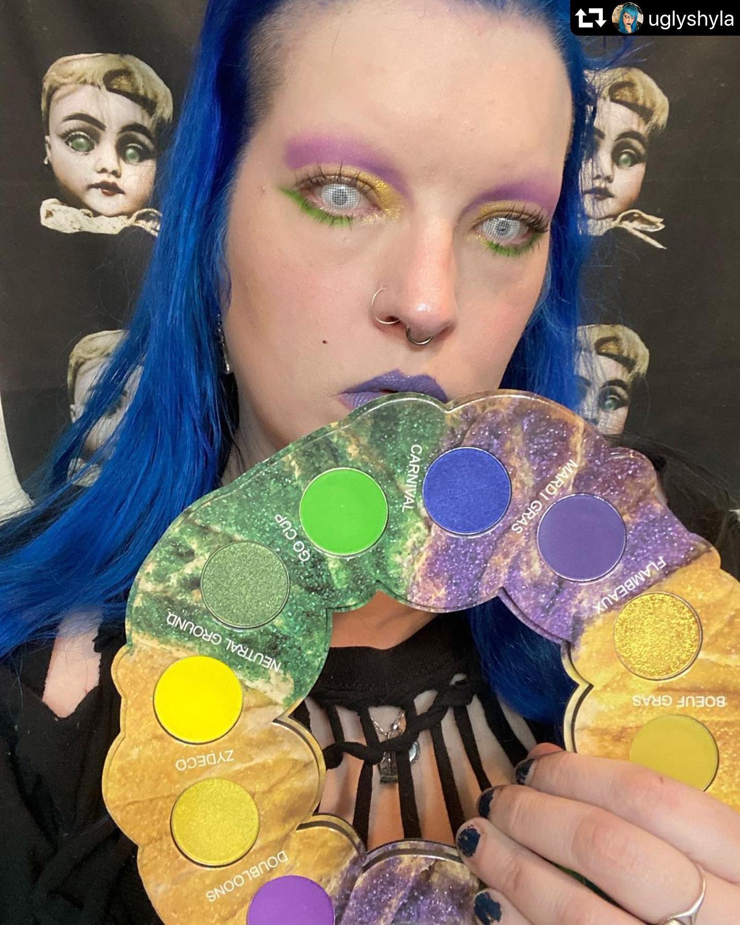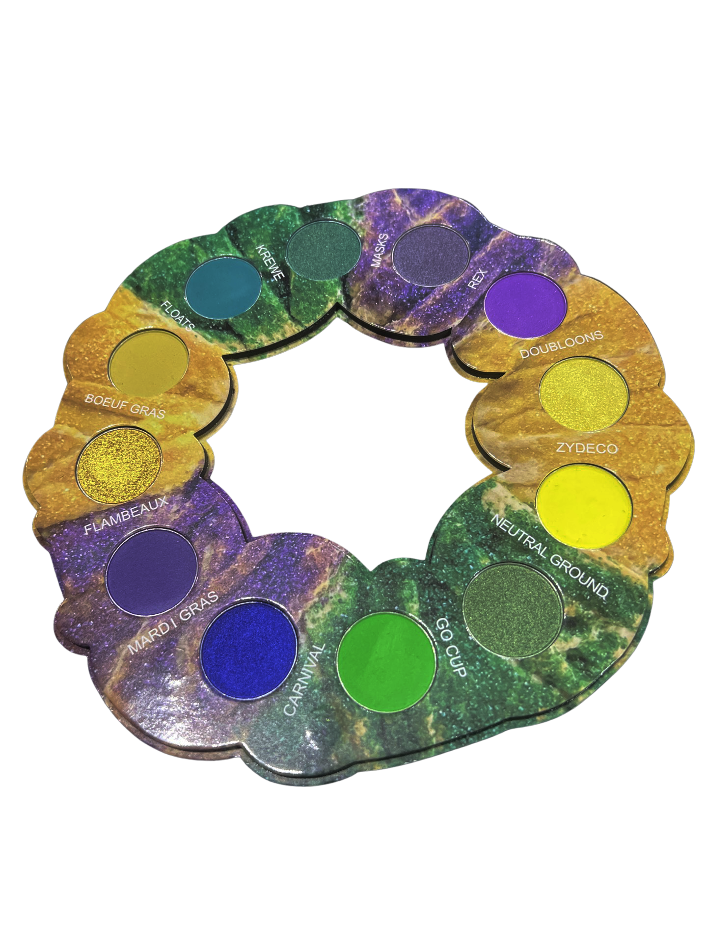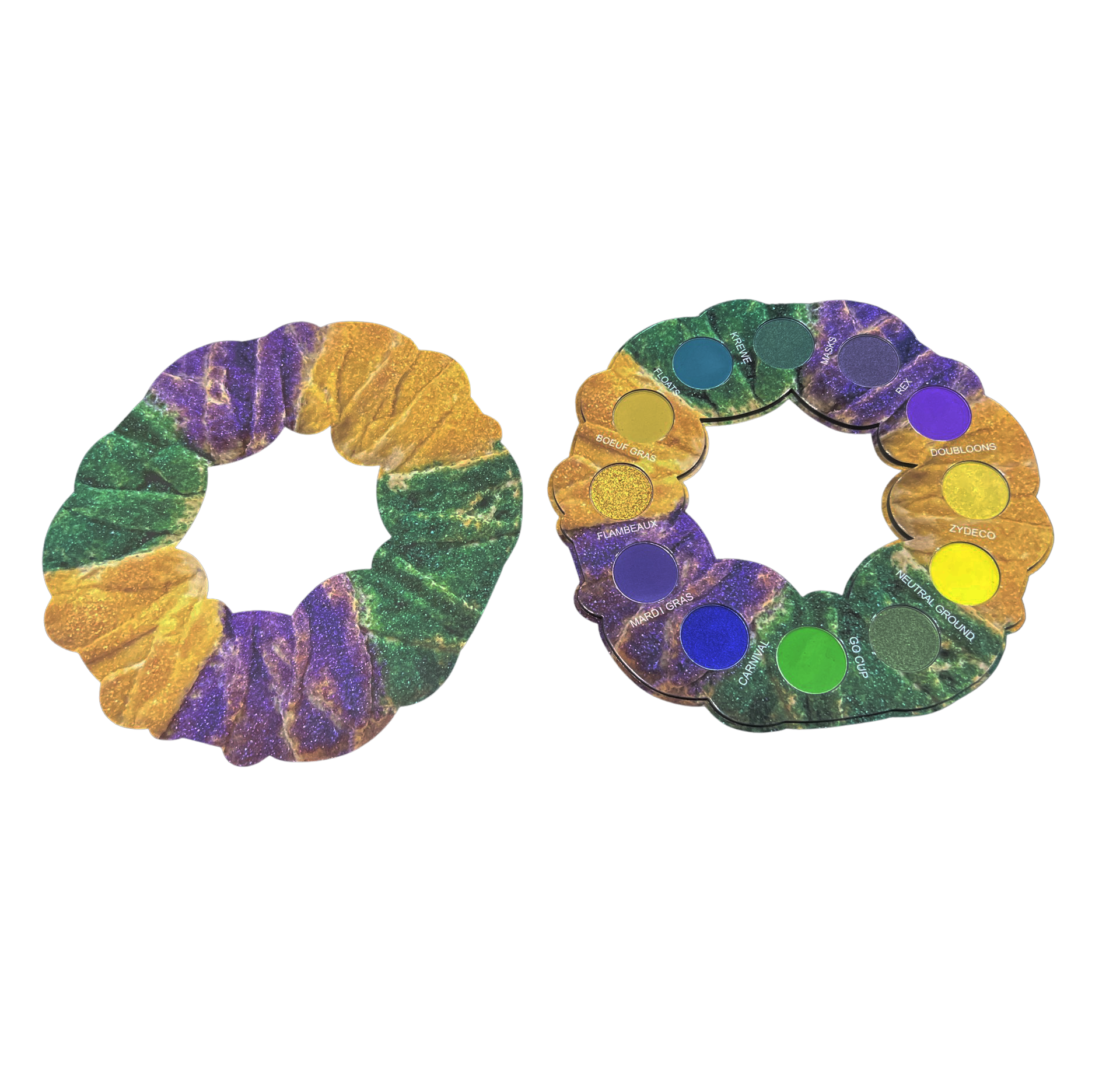 WHAT IT IS: This palette pays homage to the King Cake, a pastry centered around a tradition that was brought to New Orleans in 1870. It's usually iced in gold, purple and green - the colors of Mardi Gras. Gold represents power, purple represents justice, and green signifies faith. The 12 intense vegan, cruelty-free and talc-freeshades of this unique palette draw inspiration from this tradition.
