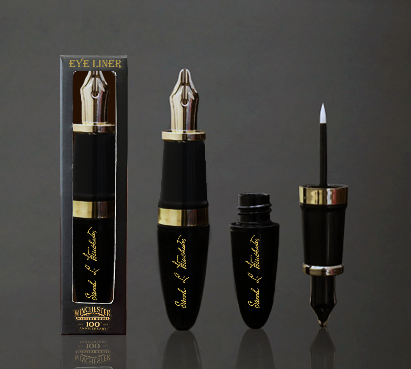 WHAT IT IS: Liquid Eyeliner in a fountain pen shaped tube depicting Sarah Winchesters signature. Inspired by the letters she wrote and the journals she kept which have taught us so much about her life and the house’s history.