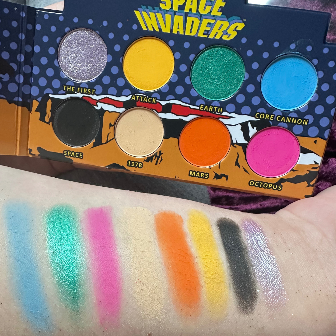 The Vampyre Cosmetics x Space Invaders collection is a cosmic journey into nostalgia and excitement, channeling the pixelated charm and intergalactic thrill of the classic arcade game. With metallic eyeshadows that shimmer like interstellar battles and lip colors that evoke the exhilaration of high scores, this collection invites makeup enthusiasts to embrace their inner space explorers.