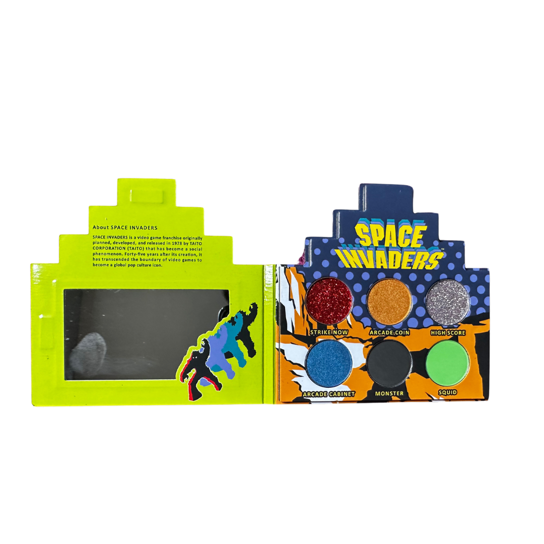 The Vampyre Cosmetics x Space Invaders collection is a cosmic journey into nostalgia and excitement, channeling the pixelated charm and intergalactic thrill of the classic arcade game. With metallic eyeshadows that shimmer like interstellar battles and lip colors that evoke the exhilaration of high scores, this collection invites makeup enthusiasts to embrace their inner space explorers.