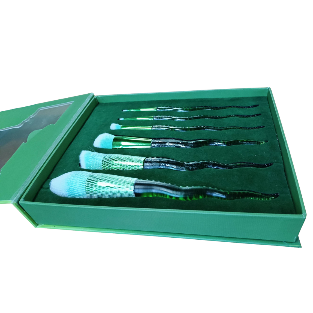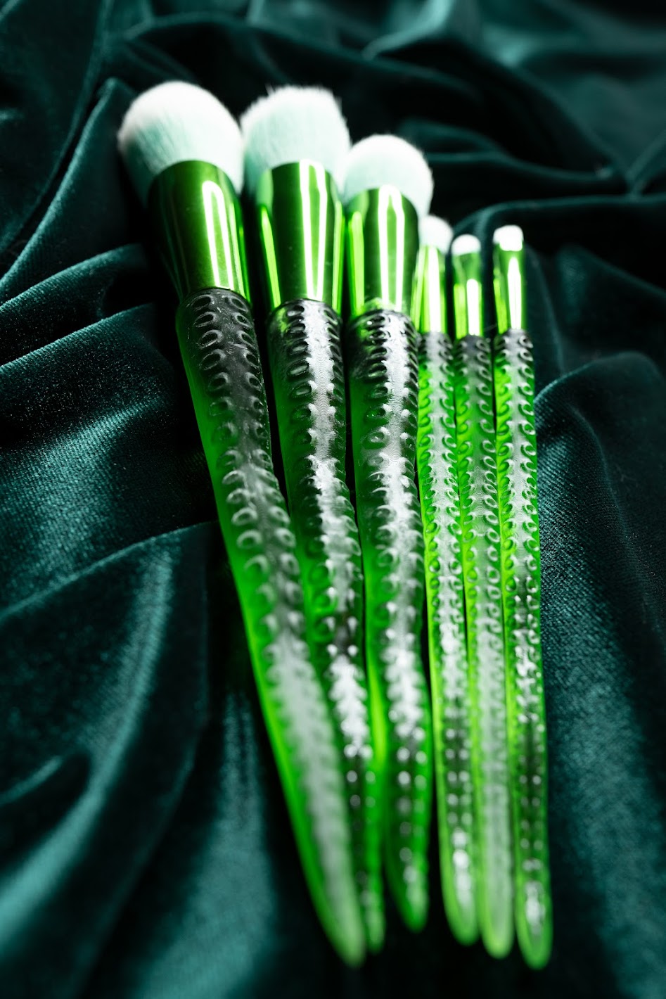 This set features 7 ultra-soft, must-have vegan brushes for the complexion, cheeks and eyes. Inspired by Cthulhu, the handles feature an ergonomic shape that makes it easy to apply stunning color.